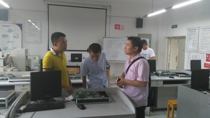 双方探讨了培养方案,课程设置,实验实践教学及教学改革等方面问题。最后在林国伟和李海老师的陪同下,来宾参观了嵌入式系统实验室、集成电路设计与嵌入式实训基地、光电显示等实验室。